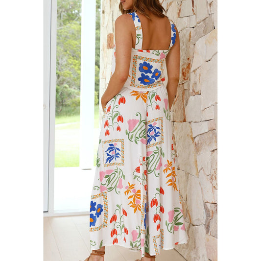 Beautiful Boho Floral Set - Square Neck Tank Top and Wide Leg Pants