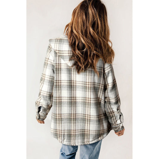 Gray Snap Button Sherpa Lined Hooded Flannel Jacket