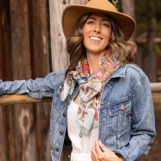 Folklore Floral Bamboo Scarf with Bird of Peace Image